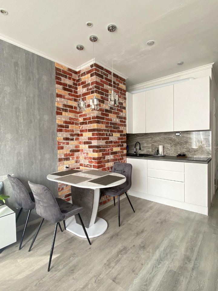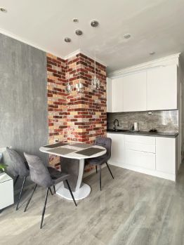 В квартире из мебели есть двухспальная кровать размера King size, диван, вместительный шкаф с зеркалом, рабочий стол, прихожая и кухня со всей встроенной техникой. Есть высокоскоростной интернет.