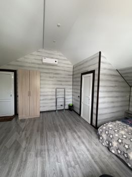 Сдам только до лета, можно на месяц или несколько месяцев. На 1-2 человека. Уютная и светлая комната в частном доме. Отдельный вход, винтовая лестница. Газовое отопление. Отдельной кухни нет, в комнате холодильник, микроволновка, чайник и плитка. Большая кровать и раскладной диван. Свой душ, туалет и стиральная машина. Без животных. К/у включены.
