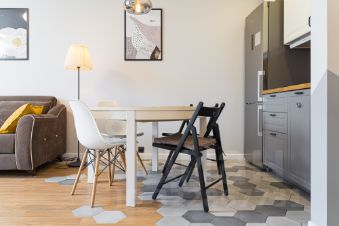 • Кухня со всем необходимым (холодильник, варочная панель, кофе машина, микроволновая печь, чайник, а так же посуда).