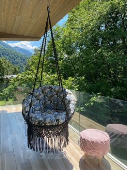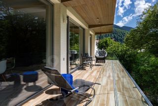 Дом-шале расположен на высоком берегу реки Бешенка.На тихой улице в центре Поляны.Из панорамных окон и открытой лоджии-террасы открывается красивый вид на горный хребет и кругозор Ефремова. Под окнами шумит горная речка, поют птицы. В другую сторону вид на хребет Аибга.Три отдельные спальни, каждая со своим санузлом, с комфортными двуспальными кроватями готовы принять по 2 гостя (общее количество гостей до 6 человек). Дети до 3-х лет размещаются с родителями, страше 3-х лет как взрослые по запросу на доп.места за доп.оплату.В каждой спальне оборудованы просторные шкафы и кресла, в каждой спальне письменный стол из натурального дерева.Сердцем квартиры является большая гостиная-столовая с живым камином. Стол из натуральных материалов (мрамор и массив бука) соберет большую семью за вкусной трапезой.В квартире имеется все необходимое для комфортного проживания:• Полностью оборудованная всем необходимым кухня: кофемашина, посудомоечная машина, варочная поверхность 4 конфорки, духовка,тостер,современная посуда и столовые приборы;• Живой камин на дровах;• быстрый интернет Wi-Fi;• Smart TV 65";• Стиральная-сушильная машина-автомат;• Фены в каждой ванной комнате;• Есть кедровая сауна• Утюг и гладильная доска;• Полотенца и ванные принадлежности;• Постельное белье и ортопедические матрасы;• теплый пол по всей площади квартиры;• приточно-вытяжная вентиляция;• отдельная комната для сушки горнолыжной одежды• отдельное помещение для горнолыжных ботинок и оборудования с профессиональной сушкой!•кондиционер•потолочные вентиляторыКвартира расположена в центре Красной Поляны у остановки Часовня.В 100 метрах находятся 3 продуктовых сетевых магазина, рестораны, кафе и кофейни. 1 место для 1 автомобиля гостей внутри на закрытой парковке. Свободная парковка для автомобилей вдоль улицы.Отдельная сушильная комната для горнолыжного оборудования.