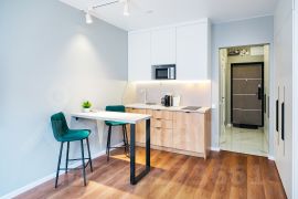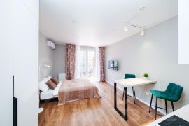 • В студии 3 cпaльныx мecта (двуспальная кровать и раскадушка), oна будeт комфоpтна для компании дo 3-х человeк, деловых путешественников и семей с детьми.