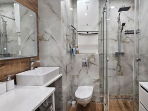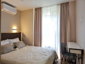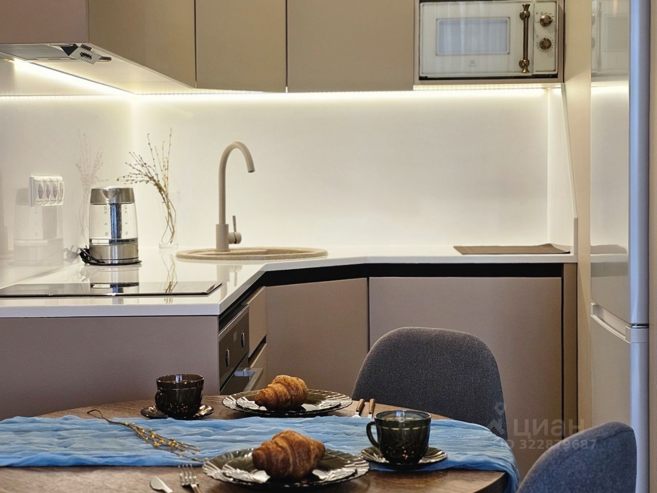 Живите в Сочи в атмосфере комфорта и эстетического удовольствия. Просторная кухня-гостиная оборудована всей необходимой техникой: холодильник, посудомоечная машина, кондиционер. Для гостей - раскладной диван, для вас - собственная спальня. Абсолютно новая посуда и постельные принадлежности. Хотите стать первым арендатором?