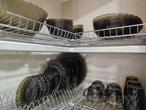 Знаю, как важны зоны хранения. В коридоре - шкаф, в спальне - шкаф-купе, в гостиной - комод с ящиками и полками. Даже в санузле вместительные шкафы с ящиками и полками - не нужно бегать за полотенцами в спальню)