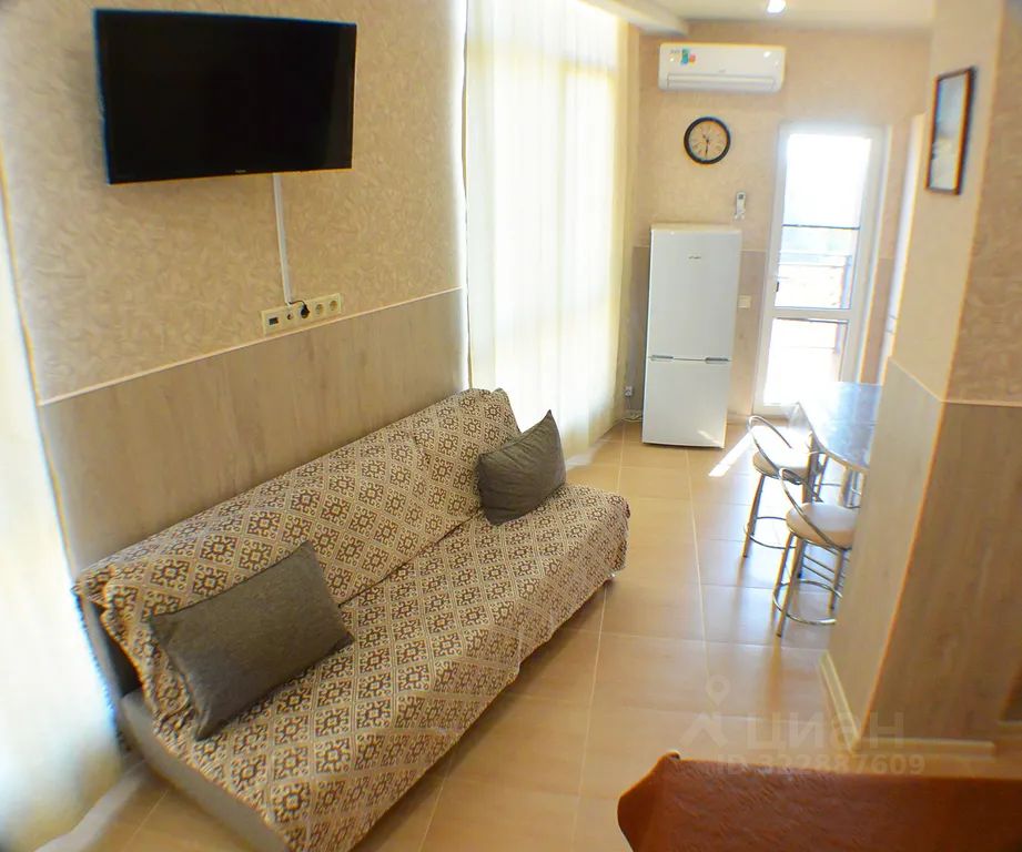 Квартира 33 м2, 6/8 этаж, балкон, рассчитана для 4х гостей. Улица Демократическая 34/1, Адлерский район, город Сочи.Мебель: Кровать 2х спальная, Диван 2х спальный, Шкаф, комод, кухонный гарнитур, стол, стулья-4 шт, гладильная доска, сушилка. Бытовая техника: Утюг, фен, Холодильник, кондиционер, стиральная машина автомат, газ плита, электро чайник, свч.