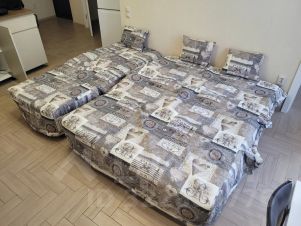 Размещает 4-5 гостей, двуспальная кровать(140см), диван (160см), диван (80см) ширина спального места.