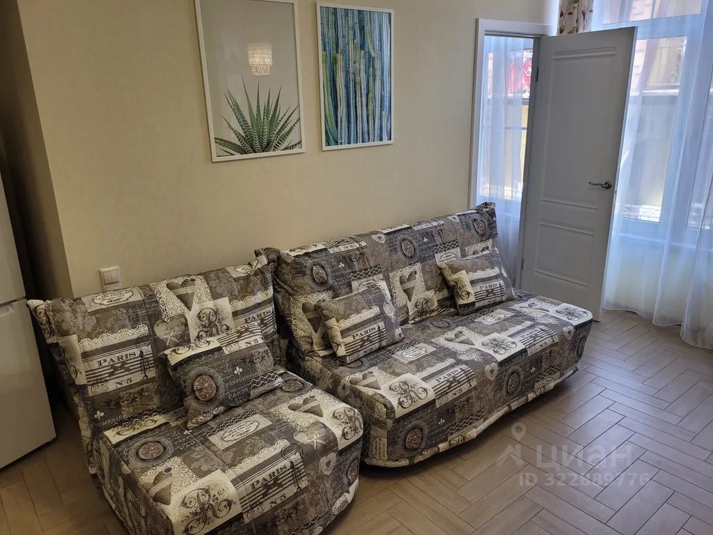 Планировка и мебель квартиры: кухня гостиная - диван-2шт, кухонный гарнитур, обеденная зона, гардеробная, санузел совмещен -душ. Отдельная комната с кроватью и комодом.