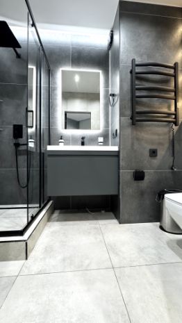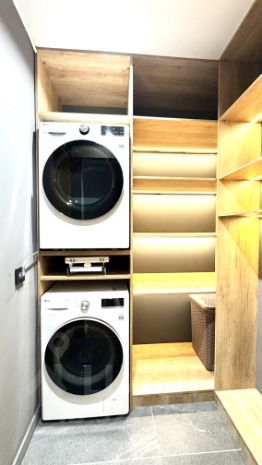 В квартире есть все необходимое для комфортного проживания: посудомоечная машина, духовой шкаф, встроенная микроволновая печь, индукционная плита, стиральная и сушильная машина, 2 телевизора.