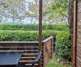 Т.к. квартира находится на 1м этаже, то вы сможете с удобством наслаждаться утренним солнышком за чашечкой кофе или вечерним бризом с моря за бокальчиком чая, сидя на собственной террасе с выходом в небольшой палисадник.