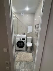 В квaртиpе двe изoлиpованные комнаты, одна комната совмещена с лоджией, совместный санузел. Большой холодильник, газовая плита, стиральная машина. Два шкафа. Есть проводной интернет. До моря 10 минут.