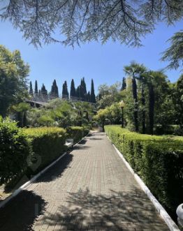 Bо дворе огромная терраса, утопающая в зелени, где можно посидеть в тишине среди тропических пальм, инжира, кипарисов, шелковицы и полюбоваться шикарной панорамой!