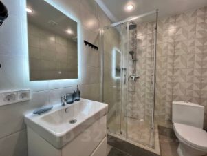 Совмещённый санузел с душевой, стиральной машиной, феном.