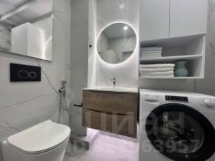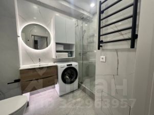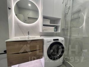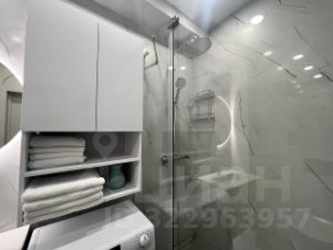 Совмещённый санузел с душевой, стиральной машиной, феном.