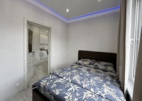 Полностью укомплектована всем необходимым для комфортного проживания: полотенца, постельное белье, посуда, утюг, кондиционер, шкаф для хранения вещей, стиральная машинка, душевая кабина, двуспальная кровать, диван-кровать (вместимость до 4х взрослых).