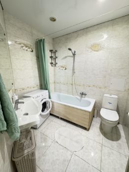 Квартира обставлена необходимой мебелью и оснащена современной техникой: кондиционер, холодильник, телевизор и стиральная машина.