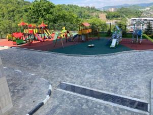 Закрытая территория дома, разнообразные детские площадки, спортивные тренажеры, мангальная зона. Красивый вид на Кавказские горы.