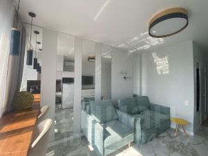 В квартире светлый современный ремонт, спальное место удобный раскладной диван, раскладное кресло. Организована кухня со всей необходимой техникой, барная стойка с прекрасным видом на море. Ваши завтраки-обеды-ужины скрасит вид на море.