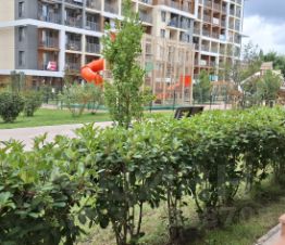 Закрытая охраняемая территория, для детей с двух с половиной лет работает детский клуб, кафе, множество детских, спортивных площадок, бесплатный теннисный корт, баскетбольная площадка, тренажеры и столы для пин-понга.