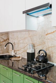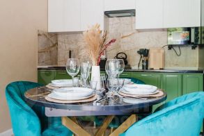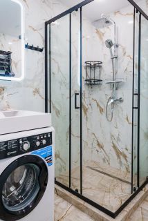 Квартира радует дизайнерским ремонтом и продуманной обстановкой. В комнатах и на кухне есть вся необходимая мебель, а также современная техника: кондиционер, холодильник, телевизор и стиральная машина. В ванной комнате установлена душевая кабина, что особенно удобно для любителей утреннего бодрящего душа.