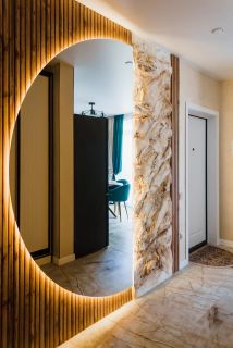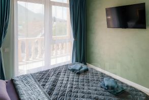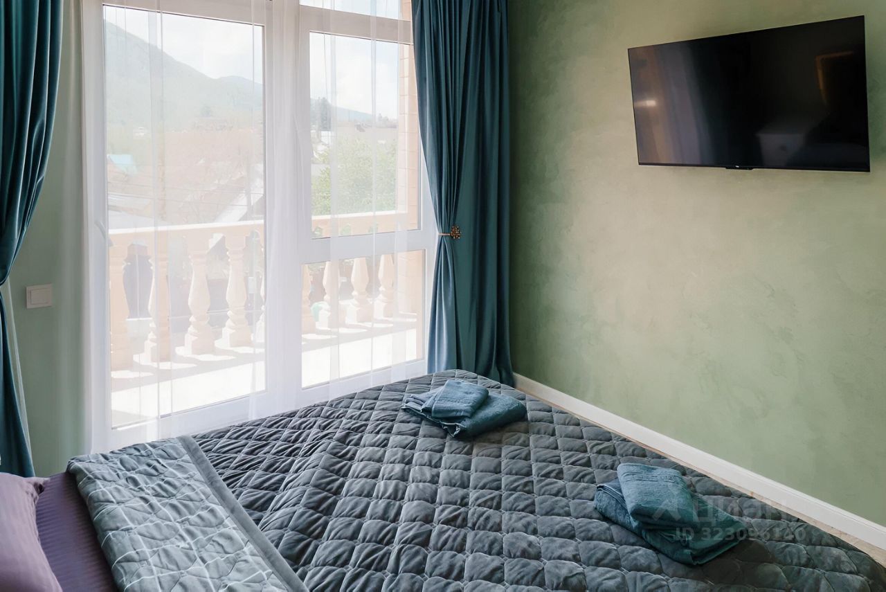 Панорамные окна квартиры выходят на северный склон хребта Аибга, обеспечивая естественное освещение в течение всего дня.