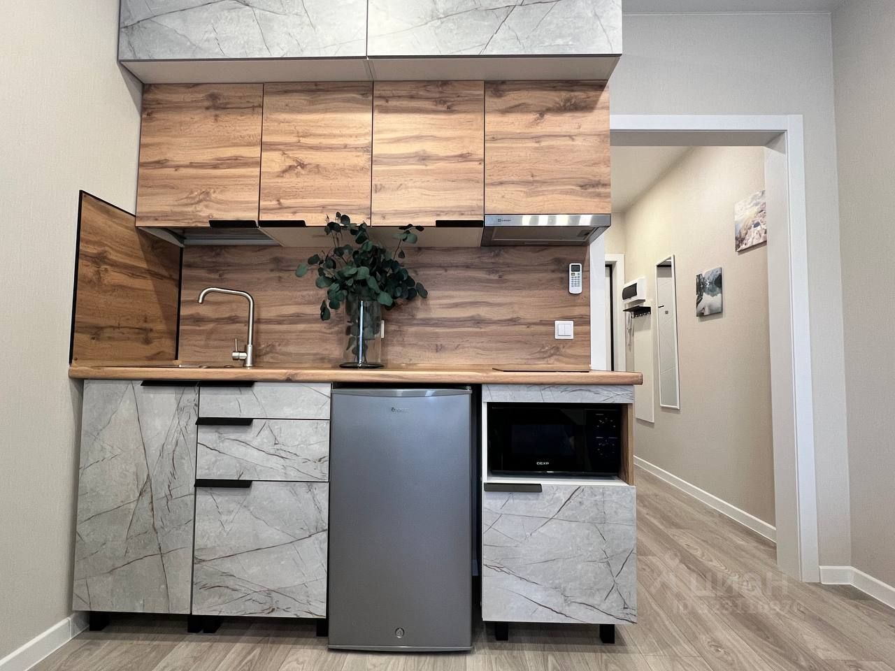 оснащение кухни: плита, холодильник, эл. чайник, микроволновая печь