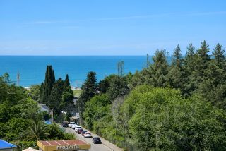 • Балкон выходит на тихую сторону — утром встаёт солнышко и поют птички, боковой вид на море