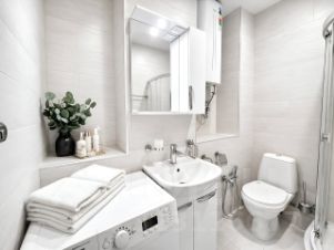• Современная техника: большой телевизор, столовая зона, стиральная машина, фен, утюг, гладильная доска, пылесос, сушилка и все необходимые удобства: постельное бельё, полотенца, средства гигиены (стартовый набор).