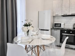 • Домашний уют: полностью оборудованная кухня с посудой для приготовления ваших любимых блюд, микроволновка, чайник, вместительный холодильник.