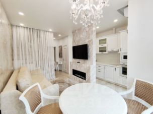 Просторная и уютная квартира с современным ремонтом, продуманной планировкой и всей необходимой мебелью. Панорамные окна наполняют пространство светом, а два уровня делают квартиру особенно комфортной для пары или семьи.