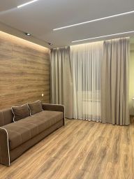 Квартира расположена на 5 этаже дома. Общая площадь составляет 33 кв. м., жилая — 25 кв. м. В квартире выполнен качественный ремонт, установлена необходимая мебель и бытовая техника.