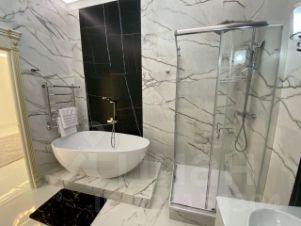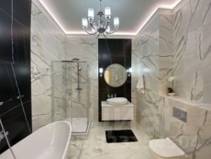 Особенности квартиры:• Просторное пространство 220 м² с продуманной планировкой• Гостиная совмещена с кухней студийного типа Три изолированные спальни (два санузла с ваннами)• Три полноценных санузла• Три душевые кабины• Свежий дизайнерский ремонт• Полностью укомплектована новой мебелью и бытовой техникой• Первоначальная сдача в аренду