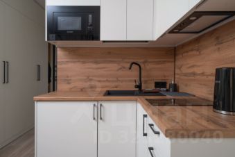 Кухонная зона — свч, холодильник, чайник, плита,