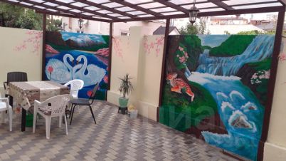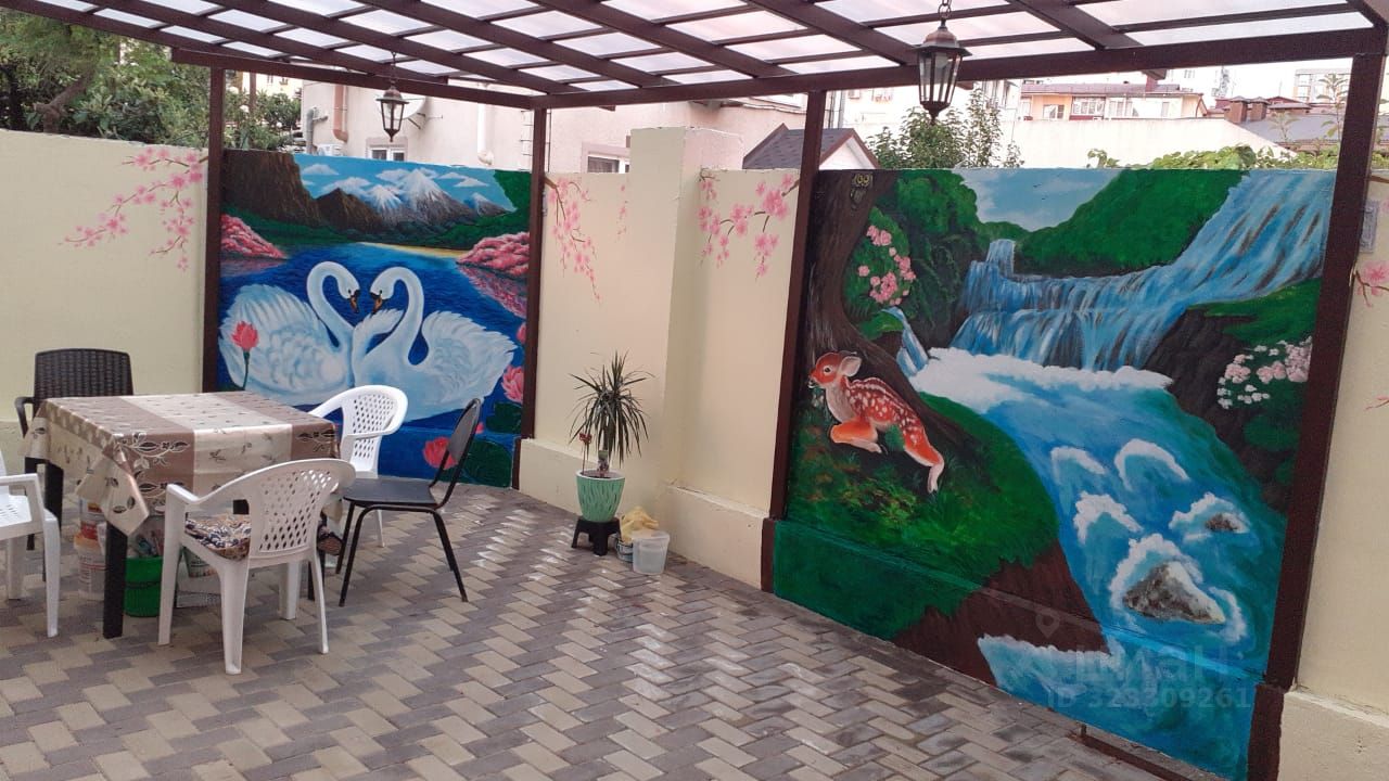 С квартиры выход в собственный двор с пальмой, юками, мангальной зоной.