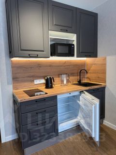Кухня укомплектована холодильником, микроволновкой, варочной панелью, чайником, фильтром для воды, посудой, столовыми приборами.