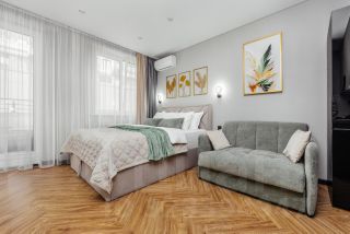 Просыпайтесь под шум моря и солнечные лучи в светлых апартаментах с панорамными окнами! Современный дизайн, продуманный комфорт для 3 гостей и завораживающие виды создадут ваш идеальный отпуск в Сочи.