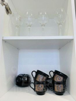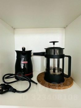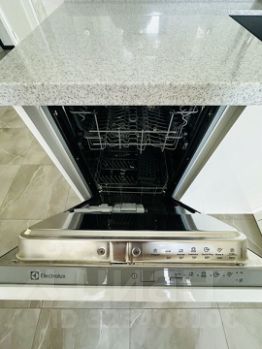 - кондиционеры, холодильник, микроволновка, эл.плита, (духовой шкаф не эксплуатируется), чайник, эл.турка для кофе, посудомоечная машина, посуда в ассортименте, прочая кухонная утварь;