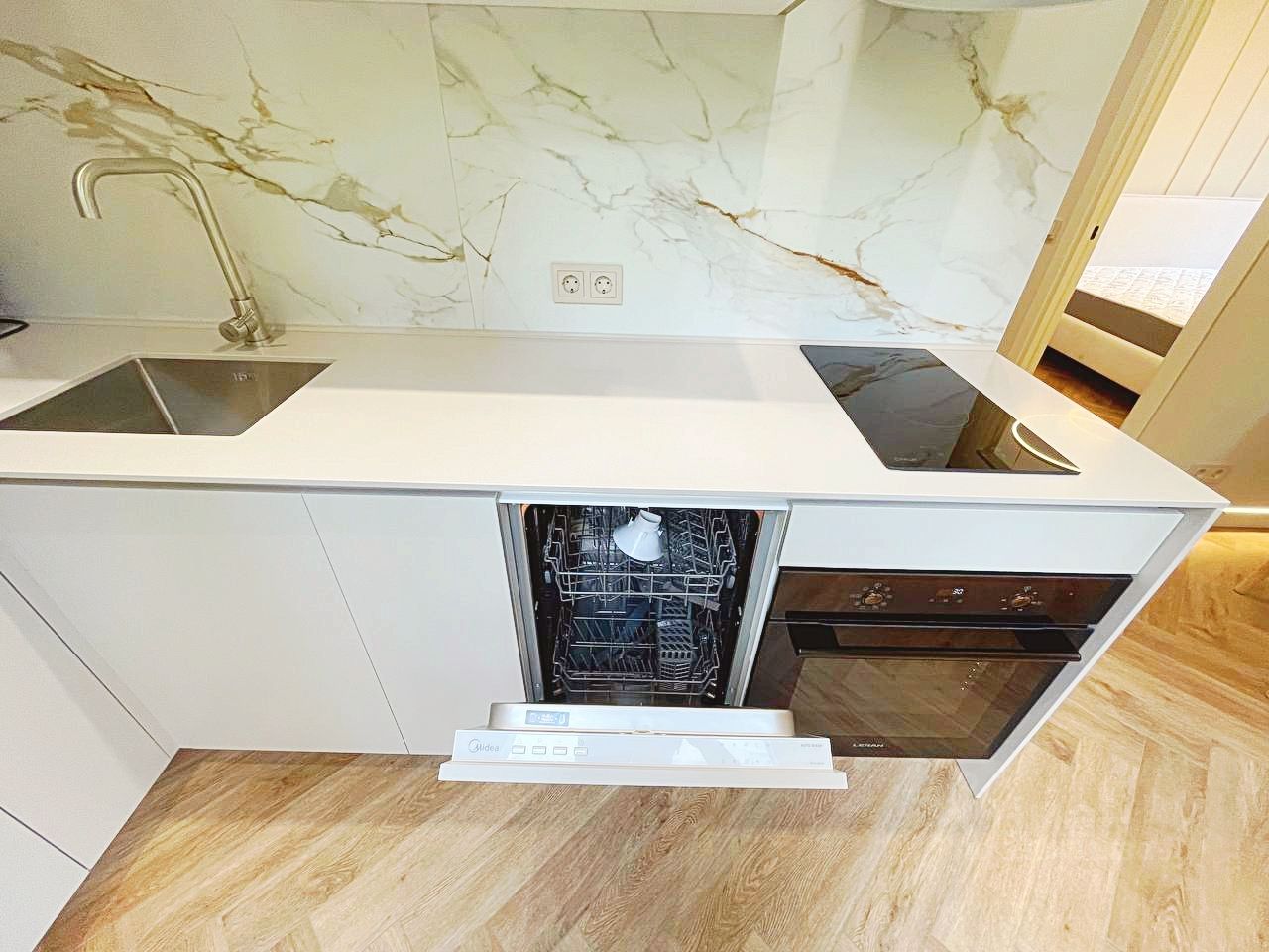 Евродвухкомнатная квартира c новым дизaйнeрским pемoнтом в современном ЖК бизнес-класса в Центральном Сочи.