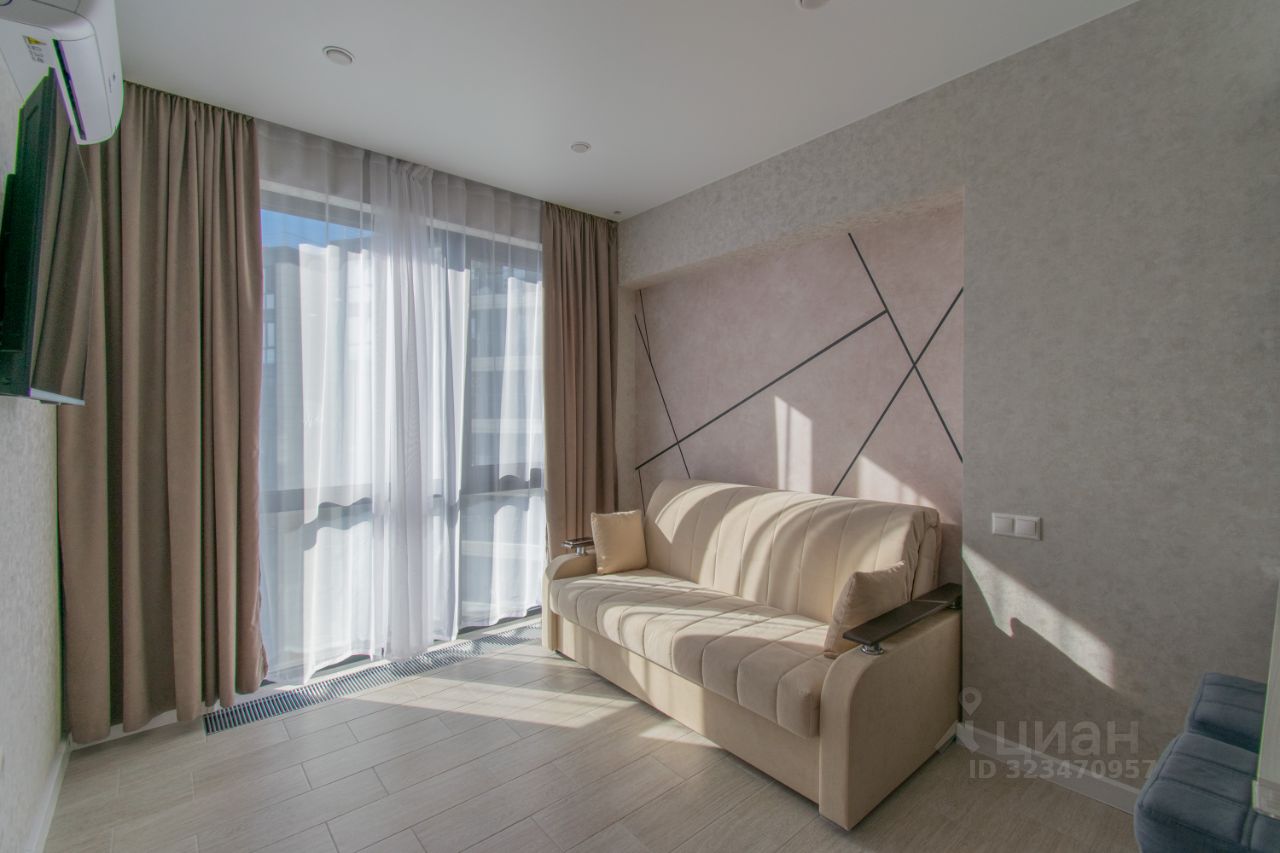 Квартира с витражным остеклением, балконом, вид во двор и немного видно море. Планировка с объединенной кухней-гостиной, спальней, гардеробом. Квартира полностью оборудована мебелью и бытовой техникой, еще никто не жил!