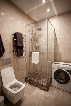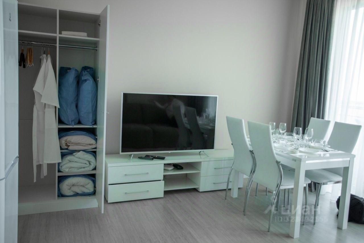 Квартира полностью оборудована для комфортного проживания. В наличии вся необходимая техника: кондиционер, холодильник, телевизор и стиральная машина. На кухне и в комнате есть мебель, что позволяет сразу заехать и жить. В ванной комнате установлена душевая кабина, что особенно удобно для быстрого начала дня.