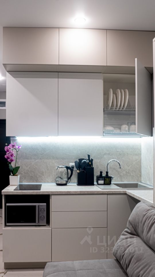 Сдаётся уютная студия с евроремонтом в новом доме 2023 года постройки. Общая площадь квартиры — 20 кв. м, жилая — 12 кв. м. Квартира расположена на 6 этаже 19-этажного дома с высотой потолков 3 метра.