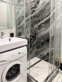 В квартире есть всё необходимое для комфортного проживания: современная мебель на кухне и в комнате, техника — кондиционер, холодильник, телевизор и стиральная машина. Просторный совмещенный санузел оборудован душевой кабиной. Из окна- великолепный вид на море!