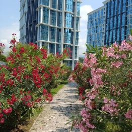 Дом новый и ухоженный, с пассажирским и грузовым лифтами, а также наземной парковкой. Это отличное место для жизни: рядом находятся торговый центр, кафе, детский сад и магазины, что делает ежедневные дела более удобными.