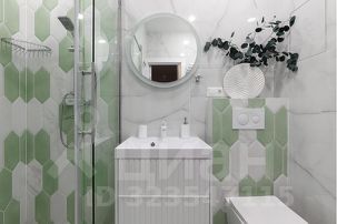 Совмещённый санузел с душевой кабиной, стиральной машиной, феном.