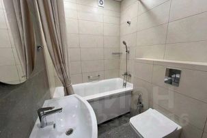 Совмещённый санузел с душевой кабиной, стиральной машиной, феном.