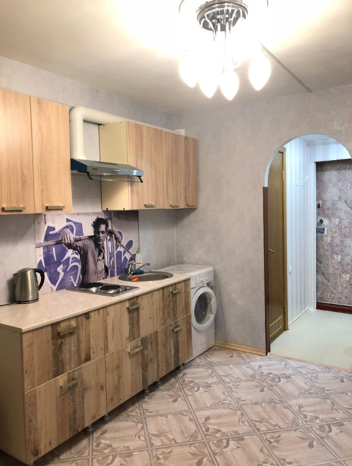 Квартира прошла косметический ремонт, в ней есть всё необходимое для комфортного проживания. В комнате и на кухне установлена мебель, а также современная техника: кондиционер, холодильник, телевизор и стиральная машина. Санузел совмещённый, оборудован душевой кабиной.