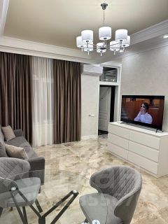 Сдаётся просторная квартира (полуторка) в новом доме с дизайнерским ремонтом. Двуспальная кровать в спальне 1,50, в гостиной диван кровать. кухня оборудована необходимой техникой. Wi-Fi, цифровое телевидение, личная парковка. Остановка, магазины шаговой доступности, до моря 3 км.