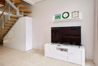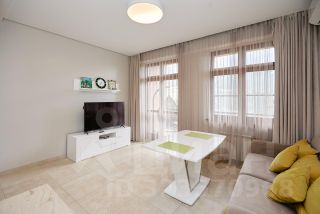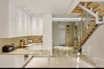 Апартамент двухуровневый , на первом этаже гостинная с кухонной зоной , где есть все необхолимое для комфорта