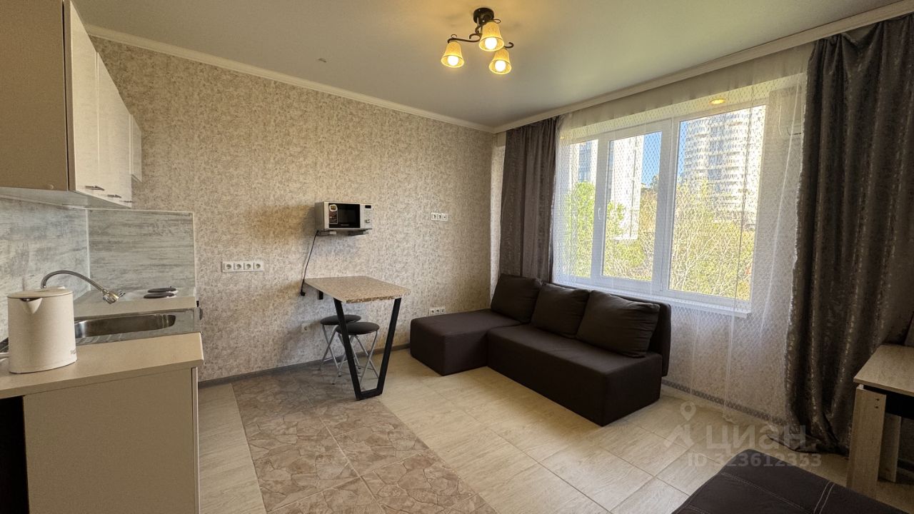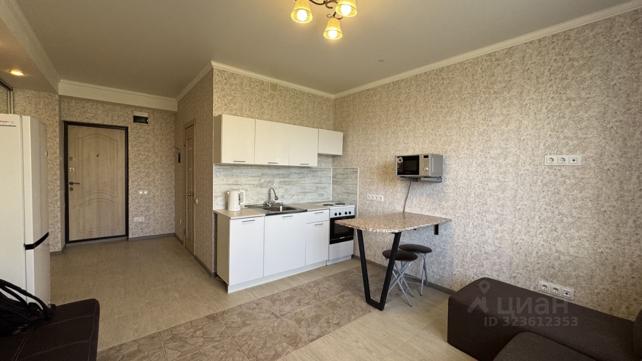 Мебель: Диван, стол, барная стойка, кухня, место хранения