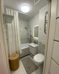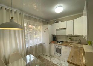 В квартире выполнен евроремонт, что создает атмосферу уюта и современности. В комнатах и на кухне есть вся необходимая мебель. Для вашего удобства установлены кондиционер, холодильник и стиральная машина. Ванная комната оснащена ванной, что особенно приятно для любителей расслабиться после трудового дня. Окна квартиры выходят как на улицу, так и во двор, поэтому в помещении всегда достаточно света.