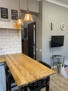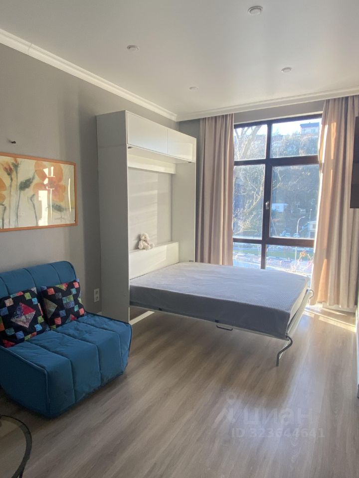 В квартире есть всё необходимое для комфортного проживания. В кухонной зоне — современная мебель и техника: холодильник, посудомоечная машина и кондиционер. В комнате — уютная мебель и телевизор. В ванной комнате установлена ванна, а также стиральная машина. Лоджия позволяет наслаждаться свежим воздухом, не выходя из дома.