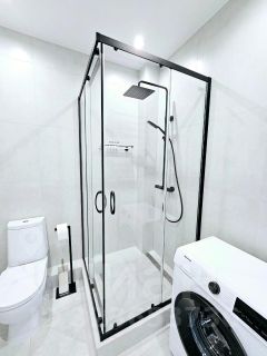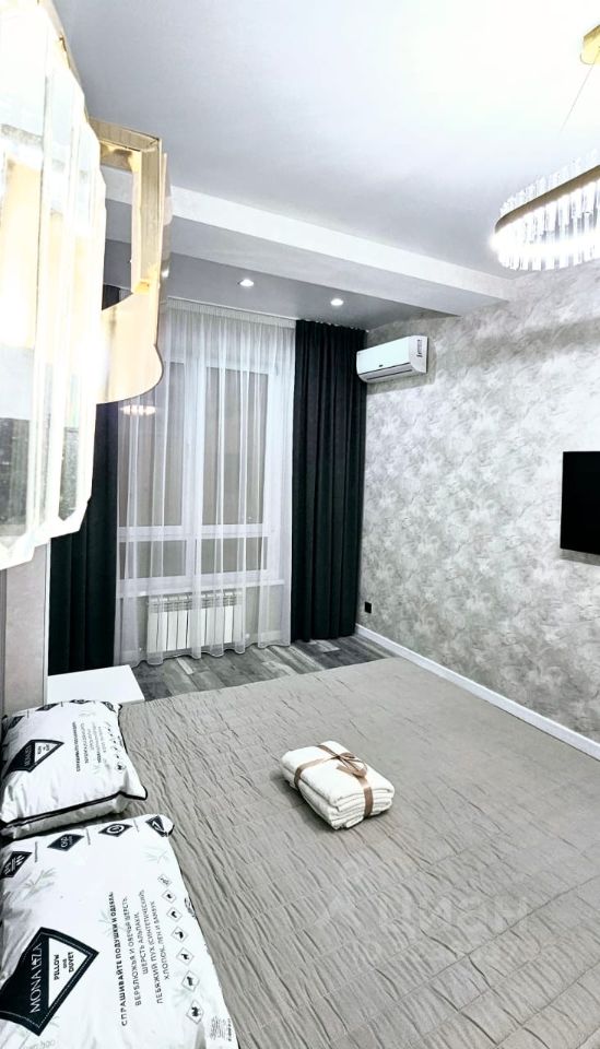 В квартире выполнен дизайнерский ремонт, который создает атмосферу уюта и эстетического наслаждения. Просторная комната и функциональная кухня полностью меблированы, поэтому можно сразу заехать и жить. Вся необходимая техника уже ждет вас: кондиционер, холодильник, телевизор и стиральная машина. Санузел совмещенный и также оформлен в современном стиле.